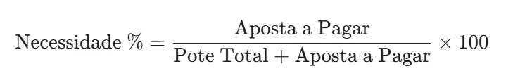 As Pot Odds determinam se o preço pago para ver a próxima carta é justo em relação à probabilidade de completar a mão. A fórmula básica para calcular a necessidade de vitória é expressa por:
